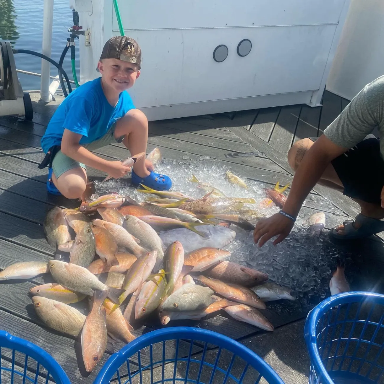 Our Key West Party Boat Fishing Charter is the longest running deep sea fishing charter in Key West, Florida, catching payloads of fish since 1947. The 58-foot Key West Party Boat Fishing Charter motors up to 60 passengers swiftly out to deep-sea fishing spots thanks to twin Detroit 8v92 turbo engines. Once anchored, the ship’s amenities—which include men’s and women’s restrooms and a galley serving snacks—keep anglers comfortable between casts. Our friendly Captains and mates are happy to assist first-time fishermen and even seasoned professionals to make the most of their fishing experience. Imagine the lightning-like stripe down the side of a yellowtail snapper or the marbled, almost serpentine pattern on a black grouper. The waters off the Florida Keys teem with such visually stunning marine life, and the crew of Key West Party Boat Fishing Charter knows how to catch them!